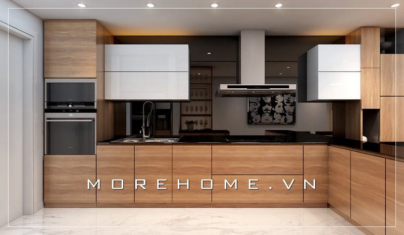 Mẫu tủ bếp gỗ hiện đại, đơn giản cho phòng bếp chung cư