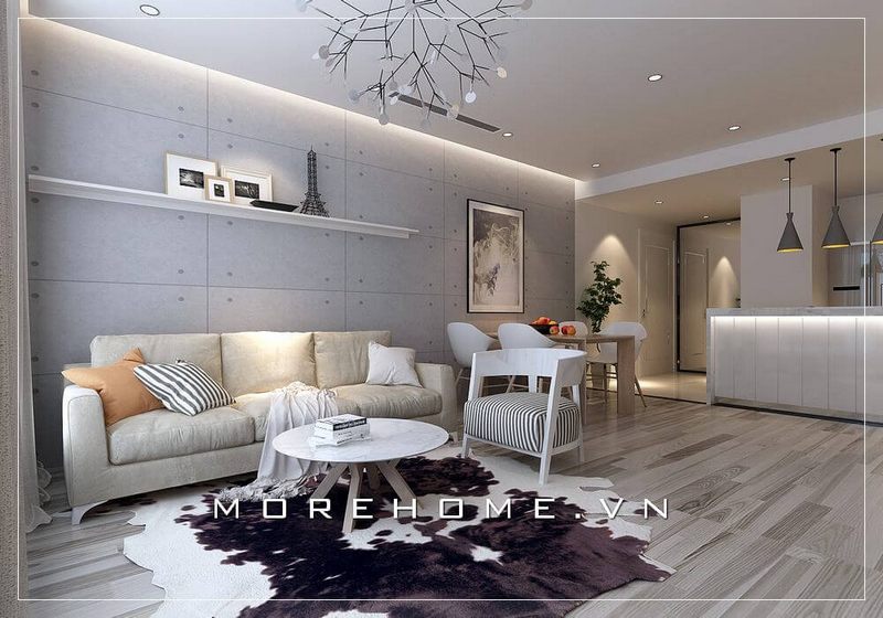 Kết hợp các đồ nội thất hiện đại với một phong cách đơn sắc hoặc họa tiết nhỏ sẽ giúp tạo nên cảm giác rộng rãi và thoải mái hơn cho không gian căn hộ nhỏ.